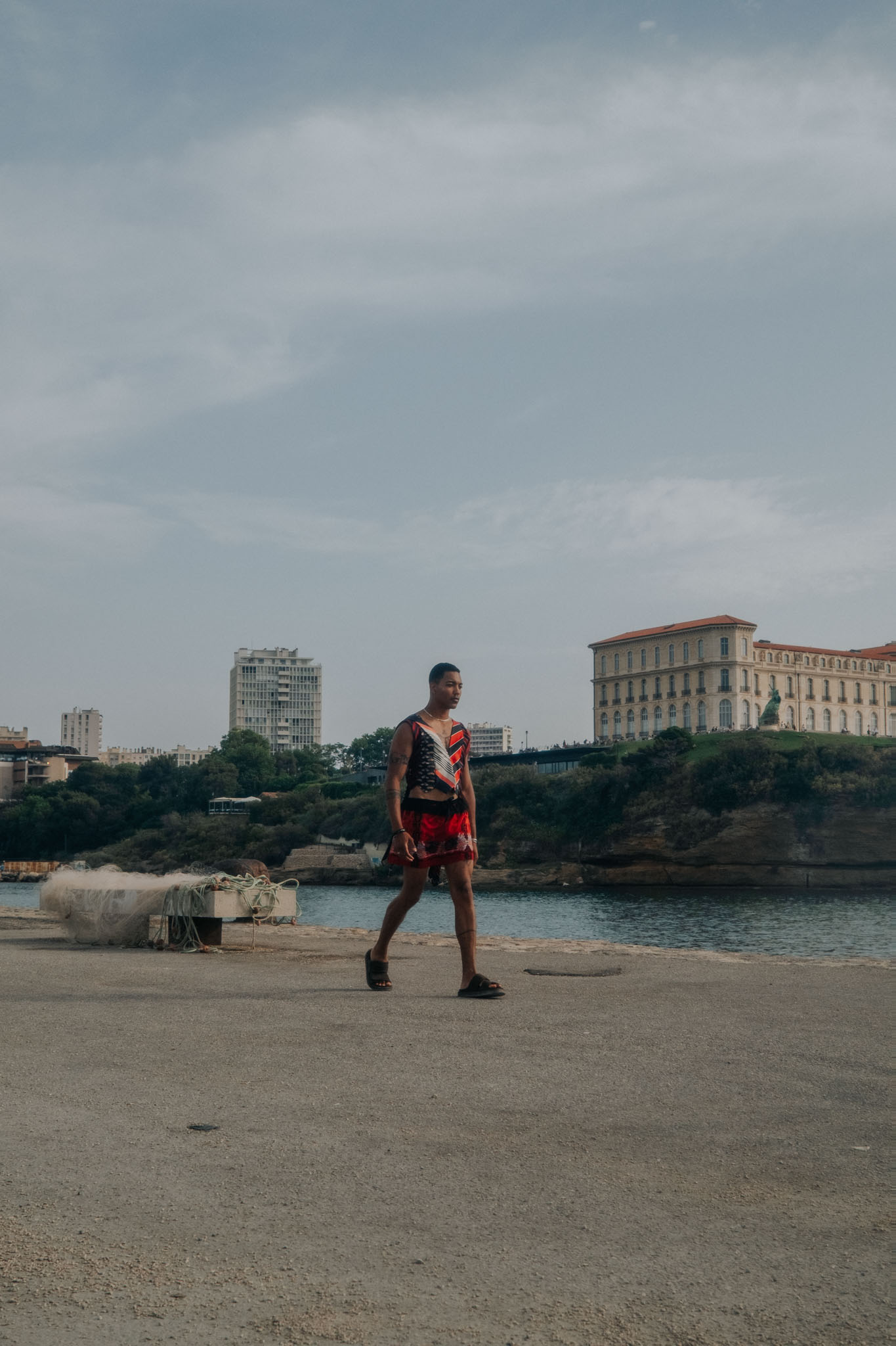 En tant que photographe, j’ai eu l’opportunité de couvrir le défilé Salé × Studio Paillette lors de la Slow Fashion Week organisée par le collectif Baga à Marseille. Dans un cadre exceptionnel, face à la mer et au MuCEM, j’ai cherché à capter la fusion des deux univers : l’upcycling audacieux de Salé et le vestiaire foisonnant de Studio Paillette.